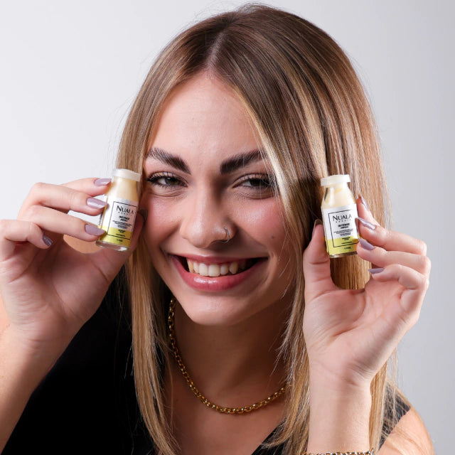 A Ampola de Reconstrução Profunda Intense da Nuala é a resposta, proporcionando um tratamento intensivo que restaura a vitalidade do cabelo em minutos.