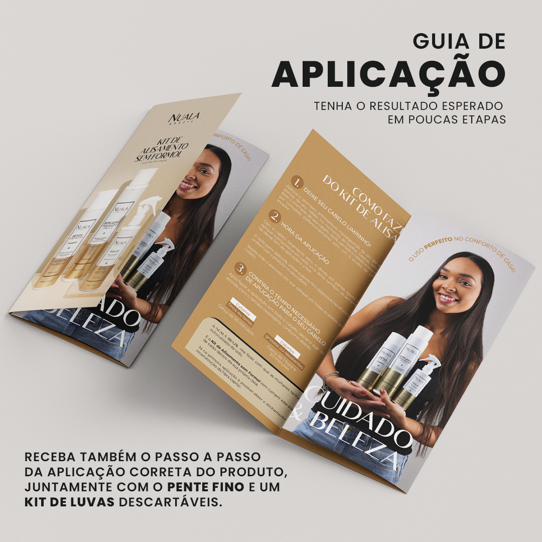 Você recebe junto com seu kit um folder com cada passo da aplicação + luvas e pente fino.