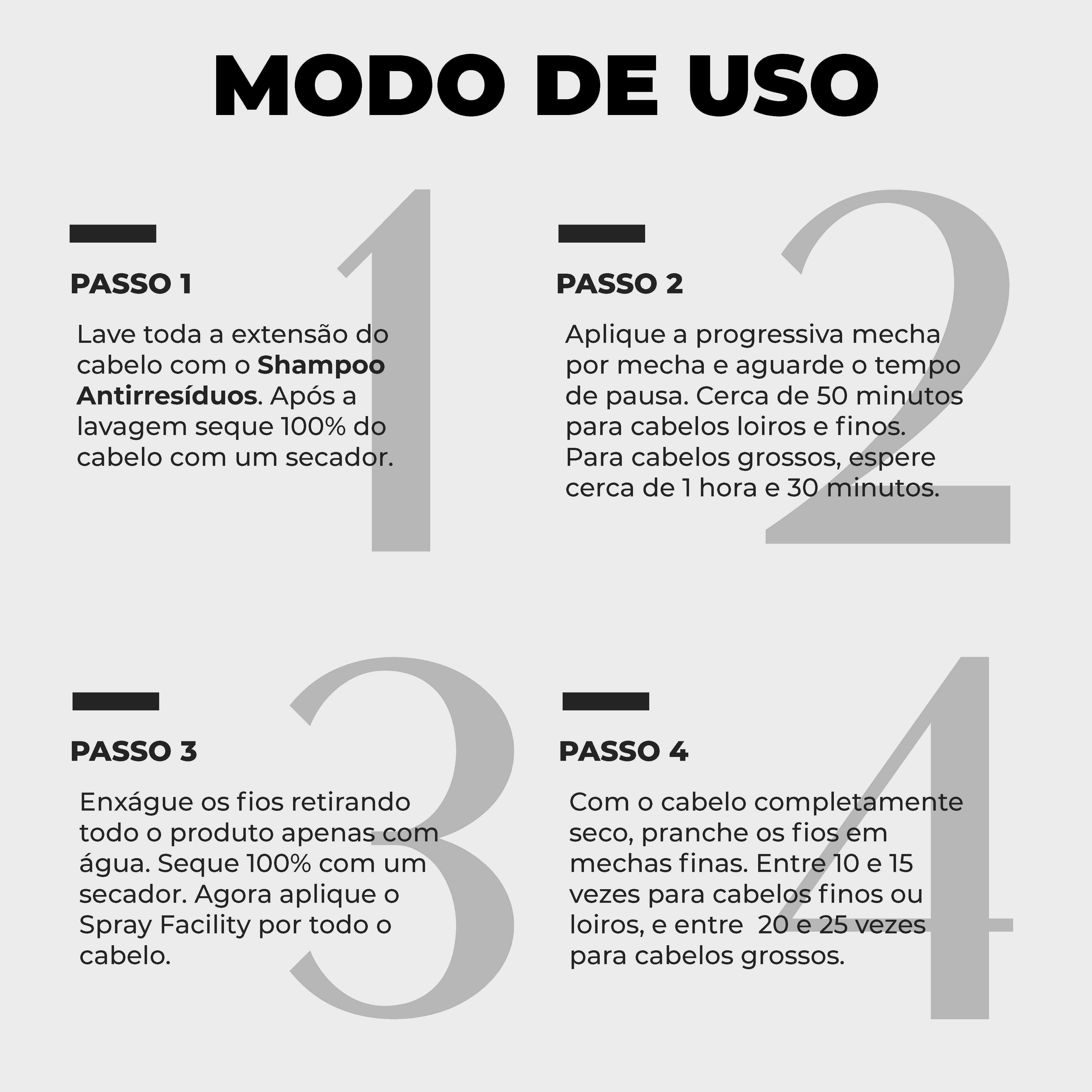 *A quantidade de aplicação varia de acordo com o tamanho e volume do cabelo.