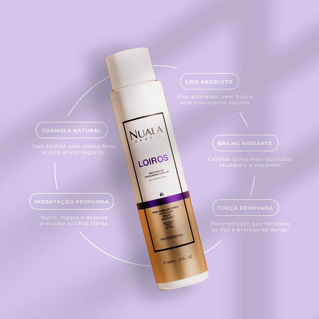 Este produto é perfeito para loiras, pois na descoloração o cabelo perde bastante queratina deixando o cabelo mais fino e frágil. A Progressiva Loiras da Nuala Brazil vai alisar o seu cabelo e auxiliar na reconstrução do fio.